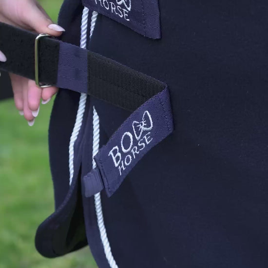 Snuggle meets style in every stitch with the Bow Horse super luxurious fleece show rug. Designed for smart functionality, it helps regulate temperature and wick away moisture to keep your horse warm without overheating.